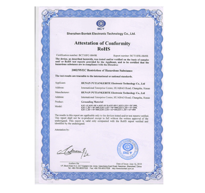名稱:環境體系RoHS認證